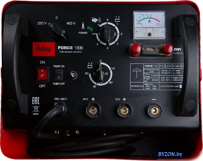 | Информация | - Мощное пуско-зарядное устройство FUBAG FORCE 1300 работает на напряжении 380 / 220 В при максимальном токе пуска 1200 А и токе зарядки 45-130 А. Устройство предназначено для использования в течение всего года в крупных автохозяйствах для быстрой зарядки кислотных аккумуляторов и запуска всех типов легковых автомобилей, фургонов, грузовиков или тракторов. - Пуско-зарядное устройство FORCE 1300 может зарядить даже полностью разряженную аккумуляторную батарею или группу аккумуляторов одинакового напряжения (12 или 24 В) одновременно. - Устройства оборудованы функциями защиты от перегрузки и обратной полярности при подключении к клеммам аккумуляторной батареи. - FORCE 1300 не имеет аналогов на российском рынке по соотношению цены, качества и технических характеристик. - Преимущества FORCE 1300: • работа с аккумуляторами напряжением 12 и 24 В • 6 режимов работы в качестве зарядного устройства • индикатор зарядного тока • таймер времени зарядки • защита от короткого замыкания • отсек для хранения кабелей и зажимов • транспортировочные колеса - Ваши преимущества при покупке пуско-зарядного устройства FORCE 1300: • Полный ассортимент аксессуаров и расходных материалов • Самая полная информация о товаре • Большая сеть сервисных центров • 2 года бесплатного сервисного обслуживания • Доставляем оборудование Fubag в минимальные сроки • Квалифицированная онлайн консультация на сайте и по телефону горячей линии +74956600300 • Возможность скачать инструкцию по эксплуатации на сайте • Только оригинальная продукция • Последние отзывы на FORCE 1300 |