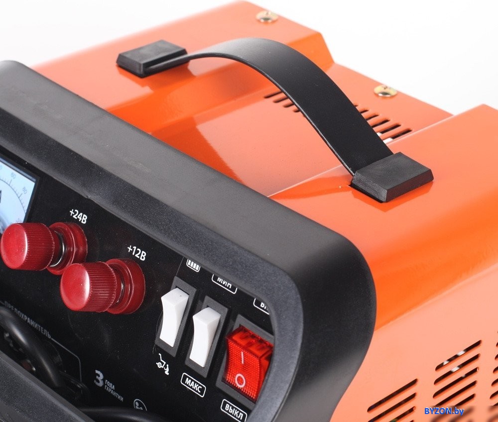 | Информация | - Устройство для бытового, полупрофессионального или профессионального использования. - Предназначено для зарядки свинцовых, кислотных аккумуляторов напряжением 12В и 24В, облегчения запуска автомобиля в холодную погоду. - 2 ступени зарядки тока. - Ускоренный режим зарядки с повышенным током. - Амперметр, защита от перегрузки, неправильной полярности, короткого замыкания. - Обратите внимание на безопасность при использовании устройства! |