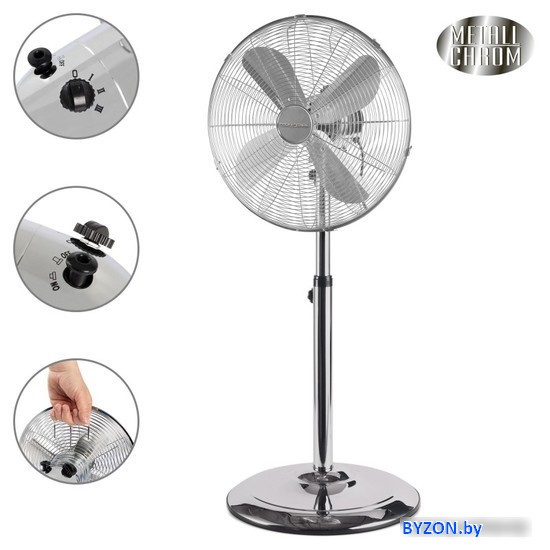 Код товара: 3104376 Рейтинг: 101 5| -142,33 напольный, мощность 50 Вт, 3 скорости, управление механическое, лопасти 40 см, питание: сеть