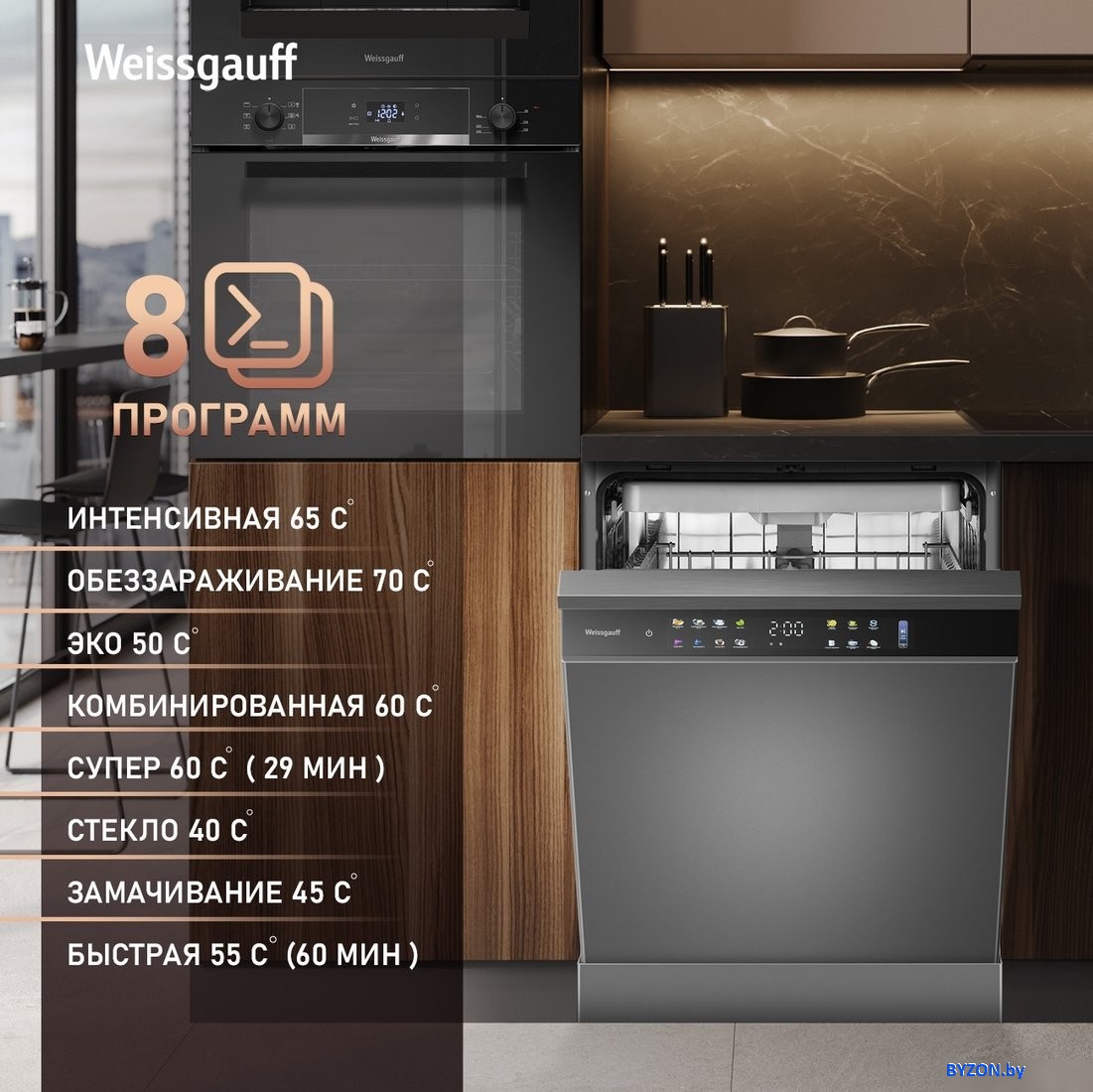 Отдельностоящая посудомоечная машина Weissgauff DW 6039 Touch Dual Wash Inox - купить в Минске