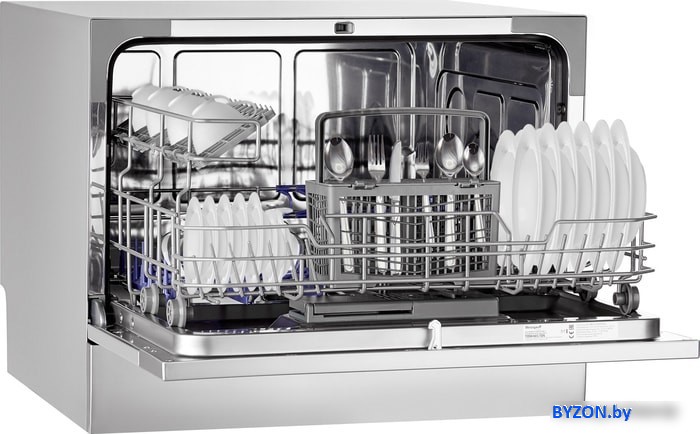 Код товара: 1911649 Рейтинг: 227 1| -45,52 загрузка на 6 комплектов посуды, электронное управление, 7 программ, серебристый цвет, сушка: конденсационная, индикация на полу: нет