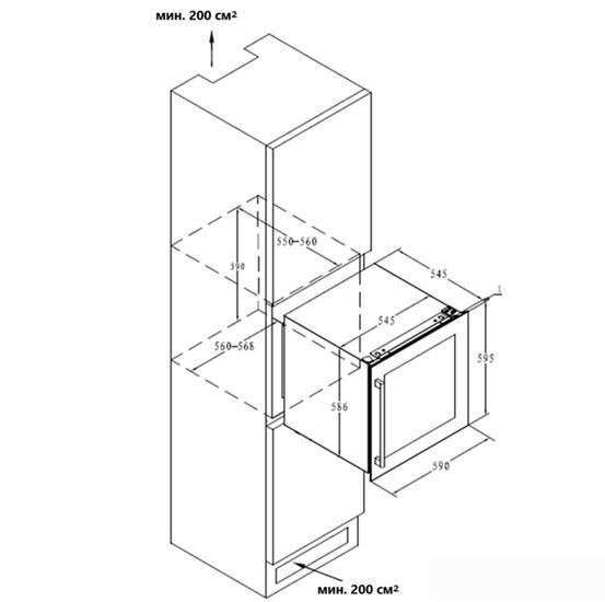 Код товара: 3772851 Рейтинг: 507 4| встраиваемый, 2 зоны температуры, 36 бутылок