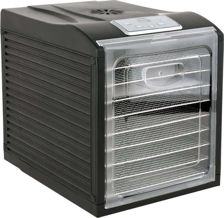 | Информация | -Электросушилка для продуктов LUND оснащена мощным двигателем 600-700 Вт, что обеспечивает быстрый нагрев и эффективное высушивание различных продуктов, включая фрукты, овощи, грибы, мясо, рыбу, травы и цветы. Благодаря девяти лоткам из нержавеющей стали с расстоянием между ними 35 мм, можно единовременно загружать большой объем сырья для сушки. Прозрачная дверца позволяет контролировать процесс без открытия устройства. -Сушилка оборудована цифровой панелью управления с LCD-дисплеем, что облегчает установку желаемой температуры (от 35°C до 70°C с шагом 5°C) и времени сушки (от 0.5 до 19.5 часов с шагом 30 минут). Таймер обеспечивает автоматическое отключение по завершении работы, а защита от перегрева делает использование прибора безопасным. -В комплект входят сетка и поддон для сушки мелких и тонких продуктов, таких как чай или травы, что расширяет возможности применения. Конструкция сушилки предусматривает съемные лотки, как в традиционной духовке, и равномерную циркуляцию воздуха для качественной сушки по всей площади. -Для устойчивости на рабочей поверхности предусмотрены противоскользящие ножки, а корпус выполнен из прочных материалов. Устройство отличается простотой управления и высокой производительностью, благодаря чему станет отличным помощником для домашнего консервирования и заготовки продуктов на длительное хранение. |