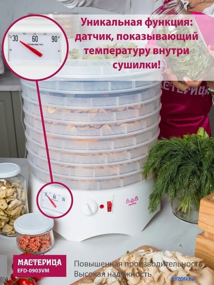 Сушилка для овощей и фруктов Мастерица EFD-0903VM (с прозрачными поддонами) - купить в Минске