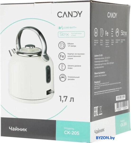 | Информация | -Электрический чайник CANDY CK-205 - это надежное и простое в использовании устройство для быстрого кипячения воды дома или в офисе. Благодаря мощности 2200 Вт и закрытому нагревательному элементу чайник быстро доводит до кипения до 1.7 литра воды, обеспечивая высокий уровень комфорта при эксплуатации. -Корпус чайника выполнен из нержавеющей стали в цвете слоновая кость, что придает ему современный и стильный вид, а также обеспечивает долговечность и простоту ухода. Встроенный фильтр предотвращает попадание накипи в чашку, а наличие индикатора уровня воды и работы делает использование максимально удобным. -Устройство оснащено стандартными функциями безопасности:автоматическим отключением при закипании и защитой от перегрева. Чайник устанавливается на подставку с возможностью вращения на 360°, что облегчает его использование и установку в любом положении. -Модель не поддерживает функции терморегуляции, поддержания температуры, заваривания чая и кофе, а также управление со смартфона. Благодаря простоте, высокой мощности и надежному исполнению CANDY CK-205 станет отличным выбором для повседневного использования. |
