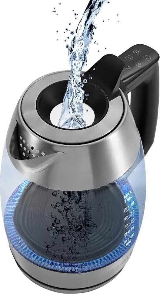 Код товара: 4697117 Рейтинг: 92 5| -40,94 умный чайник, 2200 Вт, объем 1.8 л, терморегулятор, подсветка, цвет нержавеющая сталь/прозрачный/черный