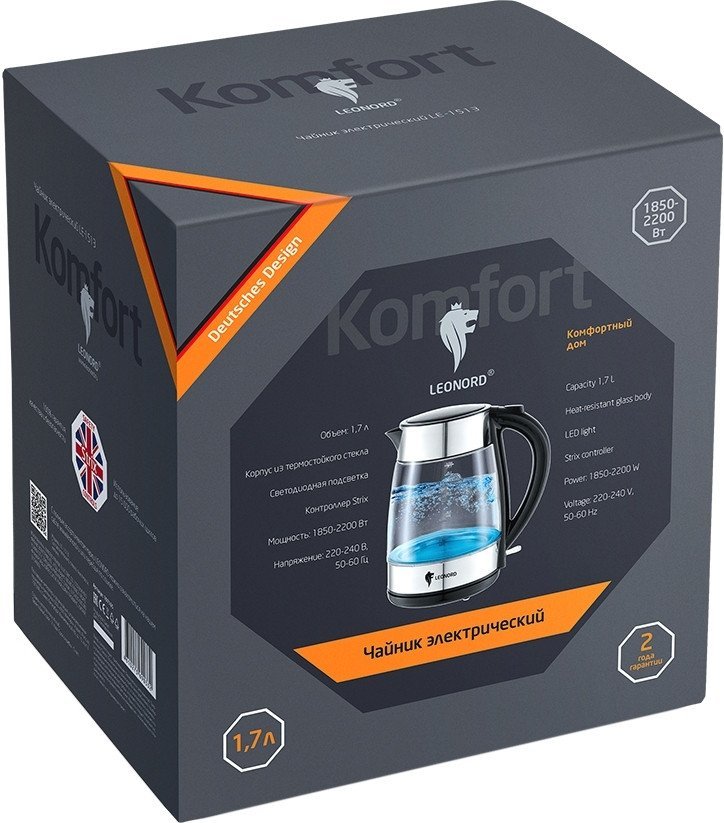 | Информация | ??Текст описания составлен при помощи искусственного интеллекта. - Электрический чайник Leonord LE-1513 — это идеальный помощник для быстрого приготовления горячих напитков. С объемом 1.7 литра он отлично подходит как для утреннего чая, так и для вечернего кофе с друзьями. - Удобная подсветка воды в синем цвете не только добавляет стиль, но и позволяет легко контролировать уровень нагрева. Вы всегда будете в курсе, когда ваш напиток готов! - Чайник оснащен закрытым нагревательным элементом, что обеспечивает безопасность и легкость в уходе. Вы можете быть уверены в надежности и долговечности этого устройства. - Механическое управление делает использование чайника простым и интуитивно понятным. Просто поверните ручку, и ваш чайник начнет работу! - Обратите внимание на возможность вращения подставки — это делает чайник удобным в использовании, особенно если у вас ограниченное пространство на кухне. - Корпус из металла и пластика придает устройству современный вид, а стеклянная колба позволяет наблюдать за процессом кипения. Leonord LE-1513 — это сочетание стиля и функциональности!  |