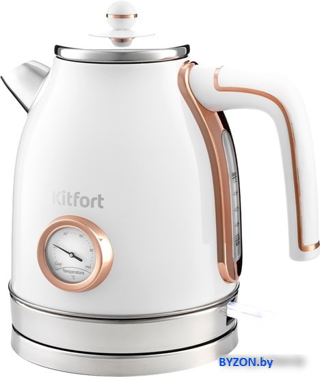 | Информация | Чайник Kitfort КТ-6102 имеет встроенный термометр, выполненный в винтажном стиле. Это очень удобно для заваривания различных напитков, для которых требуется определённая температура воды. Например, зелёный чай, белый чай, кофе и тд. |