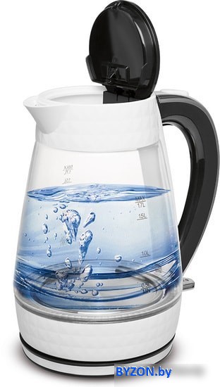 Код товара: 1834328 Рейтинг: 160 5| 2200 Вт, объем 1.7 л, подсветка, цвет белый/черный
