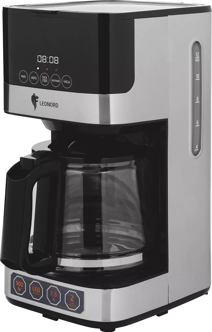 | Информация | С кофеваркой Leonord вы получаете кофе непревзойденного вкуса. Она позволяет настроить крепость напитка, а также поддерживает температуру уже приготовленного кофе в течение 40 минут, кофеварка автоматически отключается по истечении времени. Кофеварка оснащена многоразовым фильтром, защитой от капель и автоматическим отключением. Стеклянный кувшин изготовлен из высококачественного термостойкого стекла, обеспечивающий длительный срок службы. Кофеварка имеет функцию отложенного старта, которая позволяет приготовить напиток к заданному времени. По утрам, как только Вы проснетесь, Вас уже будет ждать готовый, бодрящий и ароматный кофе! |
