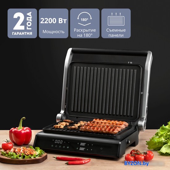 Код товара: 4155790 Рейтинг: 74 5| -96,62 2200 Вт, универсальный, двухсторонний (гриль-пресс), рабочая поверхность 290x215 мм