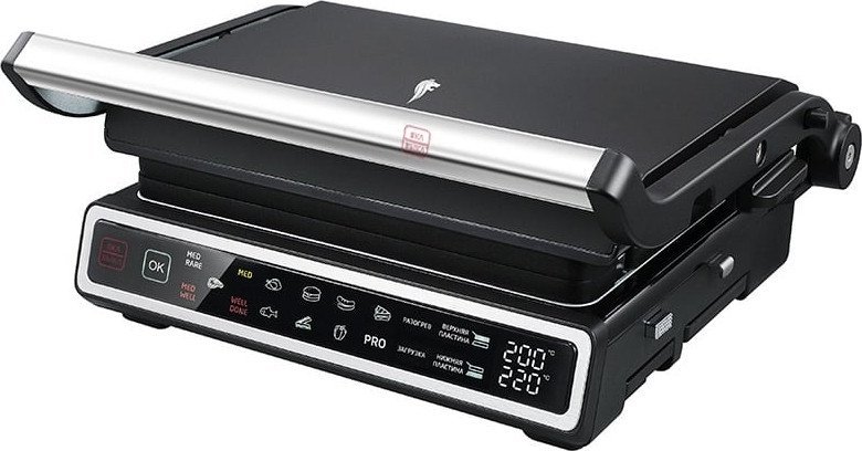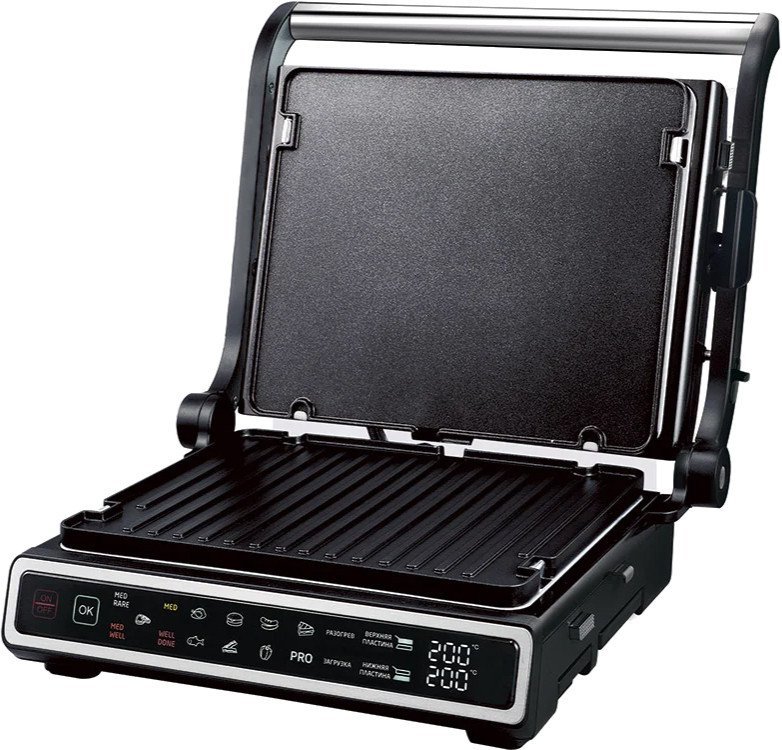 Код товара: 4720426 Рейтинг: 117 5| 1800 Вт, универсальный, двухсторонний (гриль-пресс), габариты 376x413 мм, рабочая поверхность 280x235 мм
