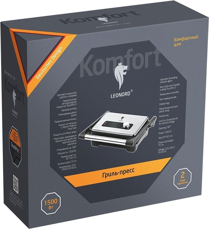 | Информация | - С грилем Leonord LE-1735 вы сможете готовить здоровую пищу без масла. Прочное антипригарное покрытие TouchPro 5 обеспечивает легкость в уходе и быструю очистку после использования. - Устройство оснащено световым индикатором работы и нагрева, что позволяет контролировать процесс приготовления. Пластины гриля открываются на 180°, что делает его идеальным для жарки овощей и других продуктов с одной стороны. - Вы можете хранить гриль как в горизонтальном, так и в вертикальном положении благодаря крышке с замком. Современный дизайн придаст вашей кухне стильный вид. - Для безопасного использования ручка не нагревается, что обеспечивает комфорт при готовке. Гриль подходит для приготовления горячих бутербродов, мяса, овощей, сосисок-гриль и многих других блюд. |