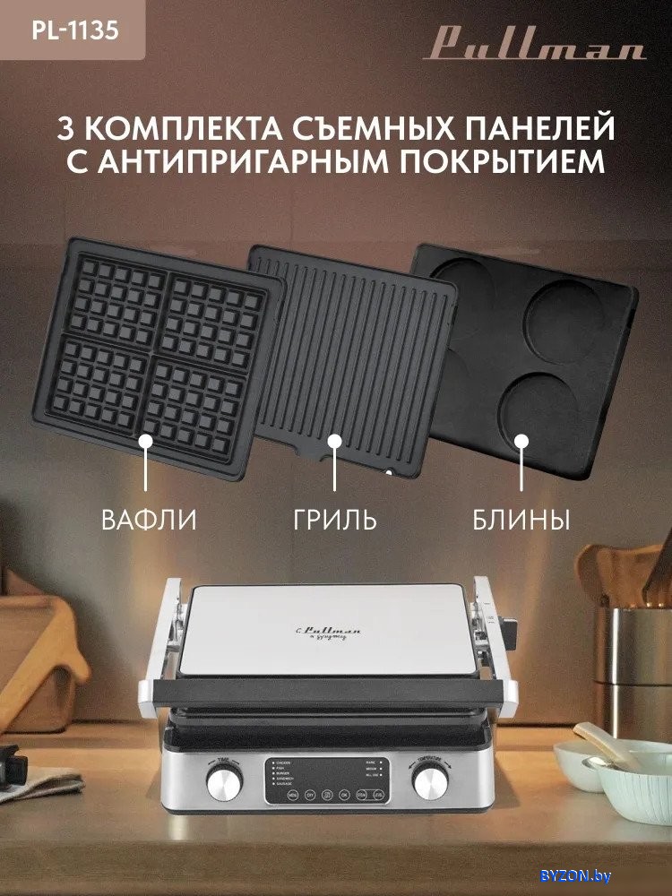 | Рабочая поверхность | блинница, вафельница, рифленая плита |
