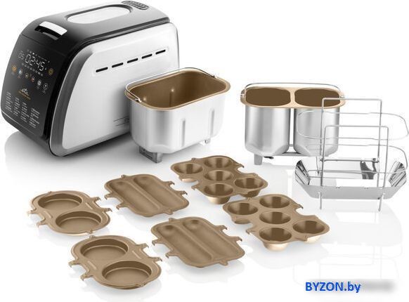 | Комплект поставки | 4 формы для выпечки, 2 крюка для замешивания, мерные стаканы, чашка, крючок. |