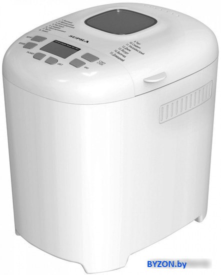 | Перечень режимов работы | 1. Базовый.2. Французский.3. Цельнозерновой.4. Быстрый.5. Сладкий.6. Безглютеновый.7. Тесто.8. Замес.9. Торт.10. Сэндвич.11. Ультрабыстрый.12. Джем.13. Йогурт.14. Выпечка.15. Домашний. |