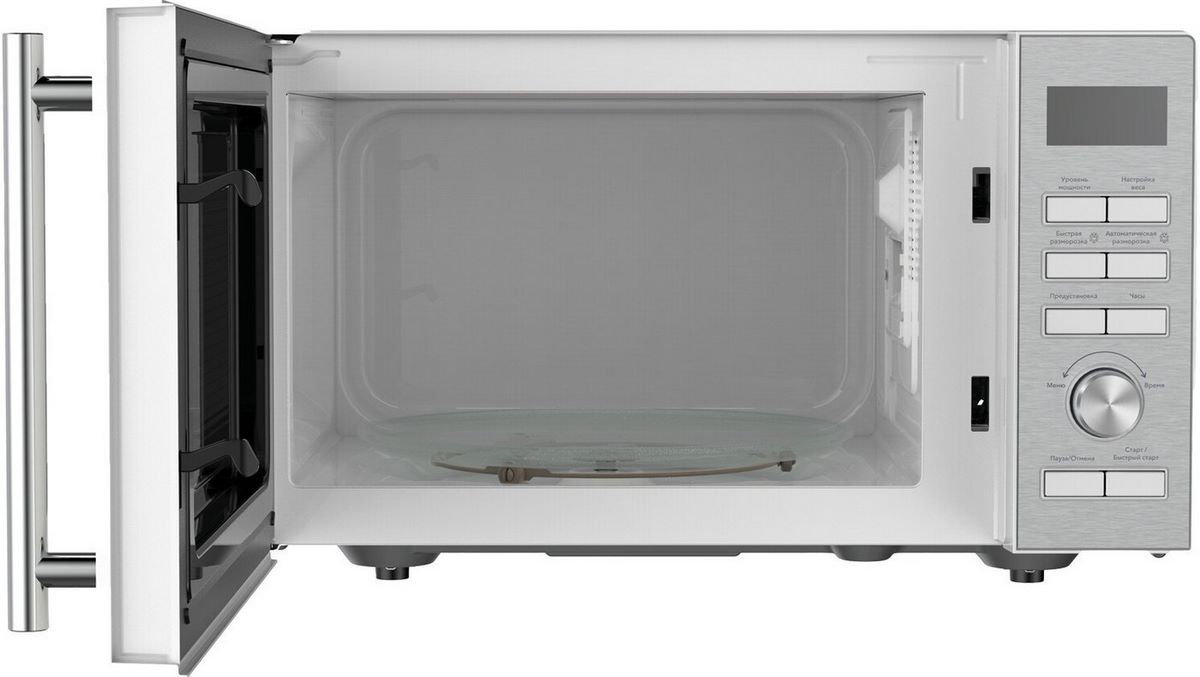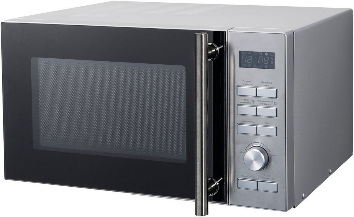 Код товара: 4949538 Рейтинг: 78 4| -32,1 отдельностоящая, микроволны (соло), объем 23 л, выходная мощность микроволн 900 Вт, управление электронное, автоприготовление, авторазмораживание, цвет серебристый/черный