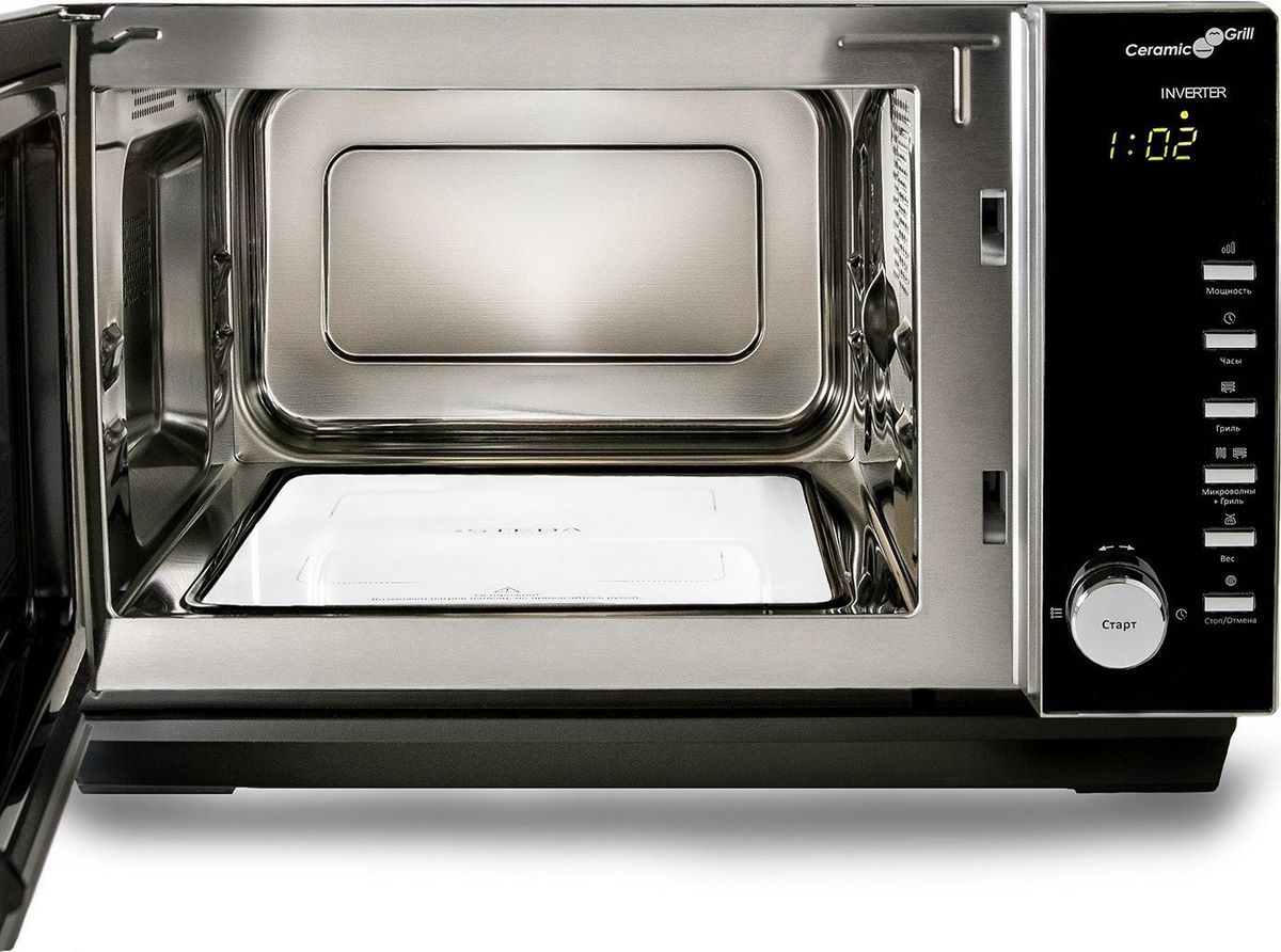 Информация | - Инверторная микроволновая печь без вращающейся тарелки - Камера из нержавеющей стали объёмом 25 л - Мощность микроволн 900 Вт - Мощность гриля 1000 Вт - Серебристый цвет корпуса - Зеркальная дверца - Часы, таймер - Замок от детей - Автоматических программ 13 - Комбинированных программ 6 |