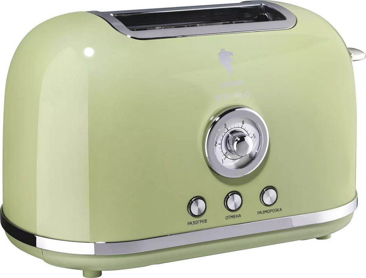 Код товара: 4720442 Рейтинг: 45 5| -16,99 815 Вт, количество тостов: 2, корпус: пластик, 6 степеней обжаривания, цвет зеленый