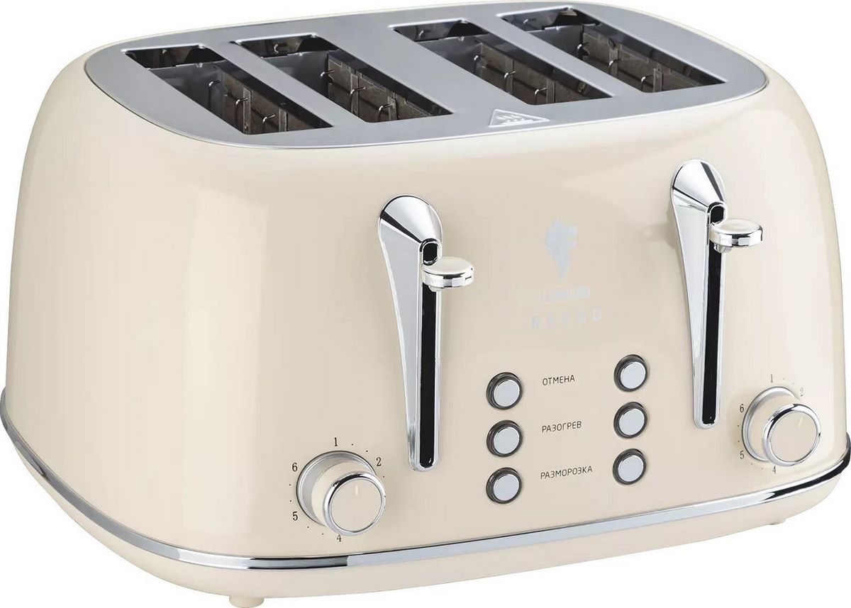 Код товара: 4720443 Рейтинг: 46 5| -3,86 1630 Вт, количество тостов: 4, корпус: пластик, 6 степеней обжаривания, цвет бежевый