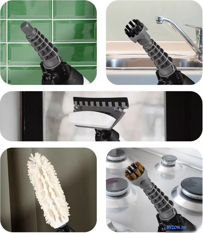 | Информация | - Паровая швабра «2 в 1» КТ-1088 — универсальное устройство, которое убирает пыль и грязь с помощью мощной струи пара и дезинфицирует поверхность. - Оснащена съемным резервуаром для воды емкостью 380 мл, что позволяет производить непрерывную уборку в течение 10-15 минут. - Два уровня подачи пара позволяют настраивать интенсивность работы устройства. - Можно выбрать направление выхода пара: вертикальная или горизонтальная подача пара. - Напольная щетка состоит из треугольной и трапециевидной частей. - В комплекте есть рамки для ковра для обеих напольных щеток. - Принцип действия основан на воздействии горячего пара на загрязнения. - Не требует чистящих средств, идеально для аллергиков. - Можно использовать с насадками без присоединения удлинительной ручки. - Большое количество насадок в комплекте для очистки труднодоступных поверхностей. - Латунная и нейлоновые щетки для очистки сложных загрязнений. - Насадка с резиновым скребком и губками для очистки окон, зеркал и кафельной плитки. - Тряпка для отпаривания и насадка для удаления пыли. - Паровой шланг и струйная насадка для очистки труднодоступных мест, щелей и углов. |