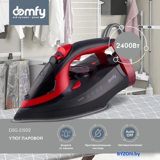 | Информация | ? Паровой утюг Domfy DSC-EI502 мощностью 2400 Вт с функцией вертикального отпаривания поможет привести вещи в порядок даже без использования гладильной доски. Возможность регулировки температуры подошвы и уровня подачи пара позволит подобрать оптимальный режим для безопасного глажения любой ткани, а наличие фильтра и системы очистки от накипи позволит избежать образования белых пятен на ней. ? Подошва с керамическим покрытием. Материал подошвы обладает повышенной стойкостью к температурным и механическим нагрузкам, одновременно обеспечивая отличное скольжение по ткани. ? Система АВТО-отключения Auto-off. Встроенный датчик движения обеспечивает автоматическое отключение нагрева через 30 секунд после пребывания в горизонтальном неподвижном положении и через 8 минут в вертикальном. ? Вертикальное и горизонтальное отпаривание. Подача пара может осуществляться в любом положении постоянно или принудительно при нажатии на расположенную на внутренней стороне рукоятки кнопку. ? Комплексная система защиты от накипи Mineral Protect. Утюг оснащен полимерным фильтрующим элементом для снижения жесткости воды и активируемой вручную системой очистки от известковых отложений. ? Двойная система очистки Self-Cleanse. Образованию накипи препятствует встроенный в резервуар полимерный фильтр и активируемая вручную функция самоочистки. ? Защита от образования капель. Автоматически активирующаяся при остывании подошвы во время глажения деликатных тканей система Anti-Drip предотвращает попадание воды на одежду. ? Резервуар объемом 400 мл. Вместительный резервуар позволяет реже отвлекаться на его заполнение. ? Функция распыления. Встроенный в носовую часть утюга распылитель обеспечивает дополнительное увлажнение ткани для разглаживания стойких складок. ? Индикатор состояния. При подключении к сети загорается красный индикатор в корпусе утюга, который гаснет при достижении подошвой заданной температуры. ? Шнур 2 м с шарнирным креплением. Длина шнура и возможность вращения его на 360 градусов обеспечивают максимальную свободу движений во время использования утюга. ? Паровой утюг Domfy DSC-EI502 позволит бережно разгладить одежду и ткани любого состава. Широкий выбор режимов, включая автоматическое и ручное отпаривание, и встроенный распылитель воды значительно облегчают и ускоряют этот процесс. А благодаря системе автоматического отключения можно больше не переживать о том, выключили ли вы утюг, уходя из дома. |