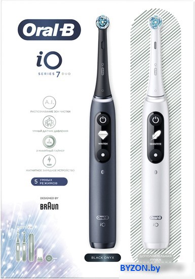 Комплект зубных щеток Oral-B iO 7 Duo (черный/белый) 4210201363040 - купить в Минске