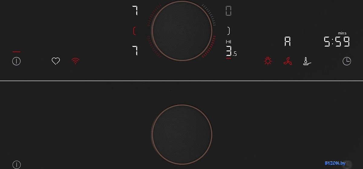 | Подробная информация о конфорках | Все четыре конфорки имеют размеры 23x20 см и мощность 2.2/3.7 кВт каждая; зона FlexZone имеет размер 23x40 см и мощность до 3.3/3.7 кВт. |