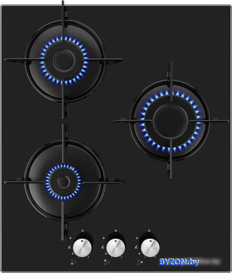 Код товара: 2206777 Рейтинг: 101 1| -134 газовая на 3 конфорки, закаленное стекло, мощность: 5300 Вт, автоматический электроподжиг, решетки: эмалированная сталь, независимая установка, размеры (ШхГ): 44x51 см