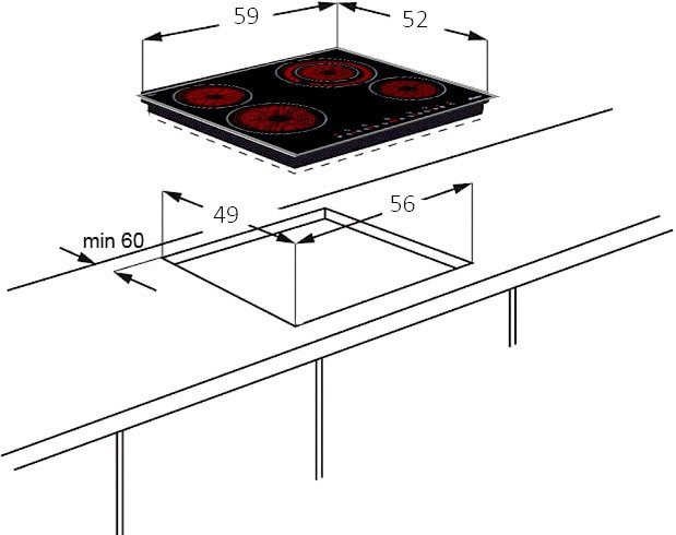 Код товара: 1451791 Рейтинг: 95 4| -5,96 HiLight на 4 конфорки, cтеклокерамика, мощность: 7000 Вт, независимая установка, размеры (ШхГ): 59x52 см