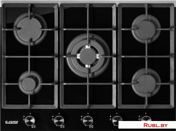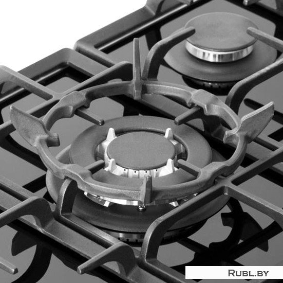 Код товара: 692769 Рейтинг: 196 1| газовая на 5 конфорок, закаленное стекло, мощность: 11300 Вт, автоматический электроподжиг, газ-контроль, решетки: чугун, независимая установка