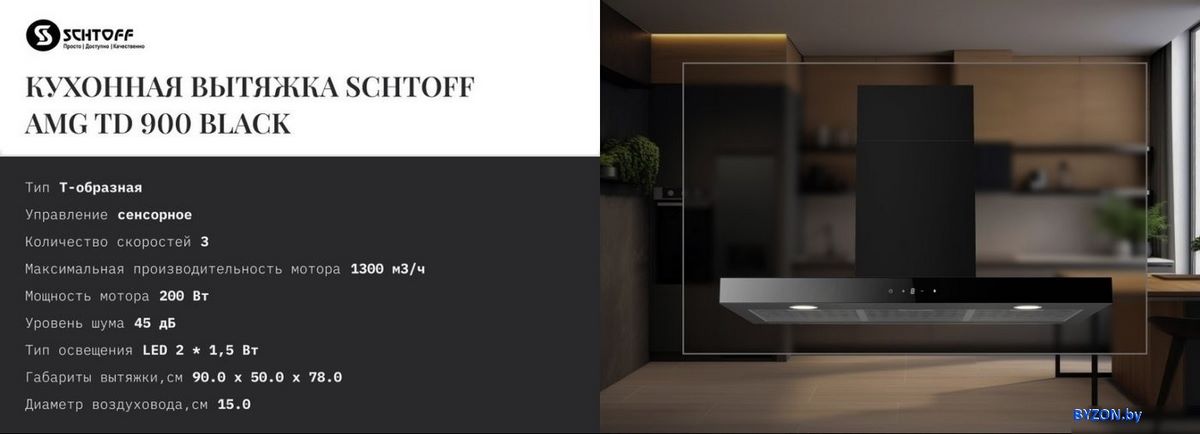 Кухонная вытяжка Schtoff AMG TD 900 Black (черный) - купить в Минске