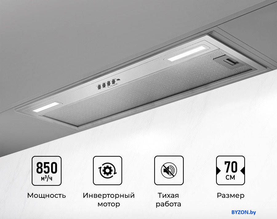 Код товара: 4859273 Рейтинг: 87 4| -32,12 конструкция скрытая, монтаж для встраивания, ширина 69.6 см, управление механическое/кнопочное, производительность мотора 850 м?/ч, цвет нержавеющая сталь