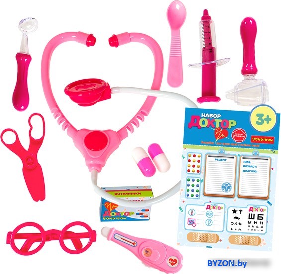 | Информация | Даже игрушки иногда болеют. Предложите ребенку побывать на месте врача и полечить свои игрушки. Замечательный игровой набор «Доктор» Bondibon поможет ребенку почувствовать себя настоящим доктором и понять важность профессии. А еще получится максимально снизить тревожность малыша и показать ему, что врач – это человек, который помогает людям, лечит их и желает исключительно добра. Со временем малыш перестанет панически бояться визитов в больницу. Сюжетно-ролевая игра «ДОКТОР» очень нравится мальчикам и девочкам. Ведь с игровым набором можно легко вылечить заболевшую куклу, измерить температуру любимой машинке, сделать укол роботу. В комплекте 11 предметов розового цвета: фонендоскоп, капсулы (2 шт.), отоскоп, шприц, зеркало медицинское, ложечка, градусник, витамины, ножницы и очки. Возраст 3+ |