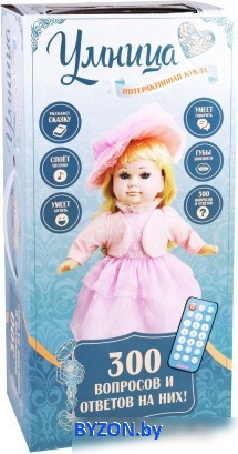 | Информация | Какая кукла может стать лучшей подружкой девочки? Интерактивная кукла «Умница»! Если кукле задавать определенные вопросы, то она будет на них отвечать. На каждый вопрос у нее несколько вариантов ответов! Если попросить ее спеть песню, то она споет одну из милых детских песенок (на английском языке). А еще кукла способна рассказать несколько увлекательных историй и помочь выучить английский язык! А вообще кукла Оля любит пошутить – это непременно рассмешит девочку! Громкость регулируется. Во время диалога губки куколки шевелятся. На куколке прелестный наряд. Кукла Оля знает обо всем на свете! Переключать режимы или задать номер вопроса (1-300) можно с помощью кнопок пульта (прилагается). Высота куколки – 48 см. Для работы куколки необходимы 3 батарейки типа AA на 1,5 V (приобретаются отдельно). Пульт работает от батарейки CR2025 (в комплекте). Изготовлено из полимерных материалов с элементами из текстильных материалов. Рекомендованный возраст: 3 года + |
