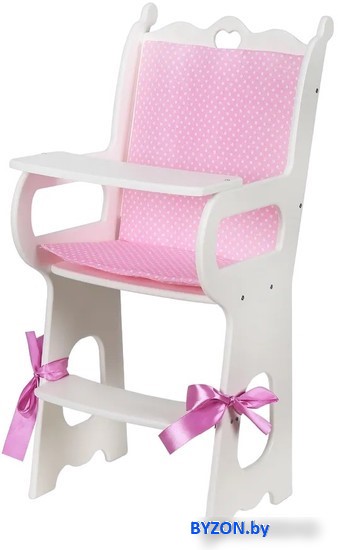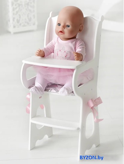 | Информация | ? Leader Toys Diamond Princess Стульчик для кормления / 71119 (белый) - идеальный аксессуар для куклы. ? В нем юная мамочка сможет с удовольствием кормить своего игрушечного малыша. ? Мягкое сиденье со спинкой из 100 % хлопка и нарядные атласные бантики обеспечат комфорт куколкам. ? Стульчик изготовлен из дерева и окрашен гипоаллергенными европейскими красками. |