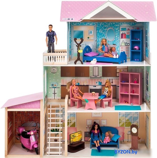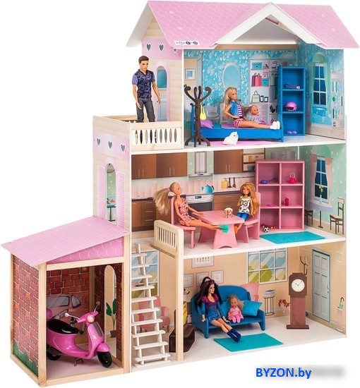 | Информация | Домик, выполнен в современном стиле, в нежно розовом цвете, благодаря которому домик кажется воздушным. Игрушку отличает нежный, пастельный принт по дереву внутри дома с акцентом на нежно голубой цвет, который отлично сочетается с девичьим розовым, не одна девочка не останется равнодушной к данному подарку. Домик предназначен для девочек старше трехлетнего возраста- Игрушечный дом для кукол "Розали Гранд" частично открытый (задняя стенка глухая, все игровые зоны с лицевой стороны полностью доступны для игры)- Разработан специально для кукол высотой до 30 см (так называемый, Барби-формат)В данной модификации дома – 1 лестница, 3 этажа, 3 комнаты, гараж и балкон. В комплекте: части домика, инструкция по сборке, мебель и аксессуары (всего 11 предметов): двухспальная кровать, шкаф (1 стойка открытая), вешалка, стол большой обеденный, 2 стула, шкаф (2 стойки открытые), диван, тумба под ТВ, телевизор, большие часы. |