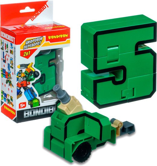 Информация | Бондиботы от Bondibon - это настоящий Цифровой переворот в мире трансформеров! Любой бондибот за считаные минуты трансформируется из супер-транспорта в ту или иную цифру! Проявив смекалку, ребенок сможет самостоятельно собирать и разбирать сколько угодно раз робота-трансформера - зеленая пушка из цифры 5. В процессе игры ребенок развивает мелкую моторику, пространственное и образное мышление, тренирует воображение а также дает первые представления о математике и числах. |