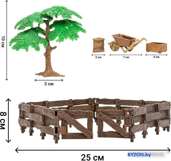 Информация | Masai Mara Игрушки фигурки На ферме (фермер, семья львов, дерево, ограждение-загон, инвентарь) • Набор фигурок являются уменьшенными копиями реальных животных, людей и зданий. • Все предметы игрового набора выполнены из высококачественного литого цветного пластика. • Игрушка не боится механического воздействия, и надолго сохранят первоначальный внешний вид. • Мелкие детали фигурки прорисовываются вручную безопасными и устойчивыми к внешнему воздействию красителями. • Под ногами фигурок имеется имитация земли/травы для большей устойчивости фигурки. • Данная технология позволяет получить максимальное сходство с реальными животными. • В комплект входит 10 предметов: львы 4 шт. (13x4x8 см, 13x3x6 см, 9x2,5x6 см,8,5x3,4x5 см) фигурка человека (6х3х3 см), тележка (7х3,5х3,5 см), ящик (4х3х2 см), мешок (3х3,5х3 см), дерево (10х3х3 см), загон (8х25х25 см). • К набору идеально подойдут другие животные бренда, выполненные в едином стиле. • Набор идеально подходит и в качестве обучающего материала и для увлекательных сюжетных игр детей. • Игры с фигурками помогают ребенку познакомиться с животными на ферме, развивают мышление, фантазию, учат бережно относиться к окружающему миру. • Набор фигурок – прекрасный подарок на День рождения или любой другой праздник. |