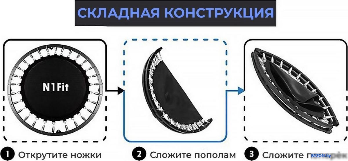 Информация | - Складной батут N1Fit без сетки — идеальный выбор для активного отдыха и тренировок. Он создан с акцентом на безопасность и комфорт, что делает его подходящим для пользователей разного возраста. |