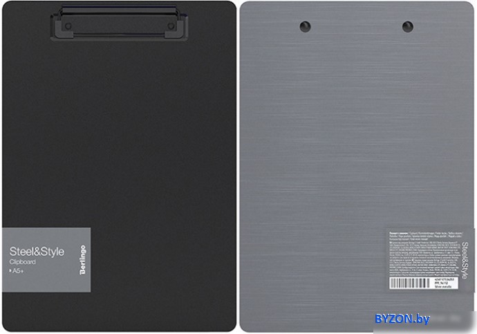 Информация | Прочный стильный планшет с зажимом Berlingo серии Steel&Style формата А5+ позволяет удобно делать записи на весу. Планшет изготовлен из полифома толщиной 2500 мкм. Вмещает 100 листов. Планшет имеет необычный цвет оборотной стороны "серебристый металлик" в сочетании с фактурой "сталь" и чёрный цвет внутренней поверхности с чёрным прижимом. Металлический зажим надёжно фиксирует документы, не повреждая их |