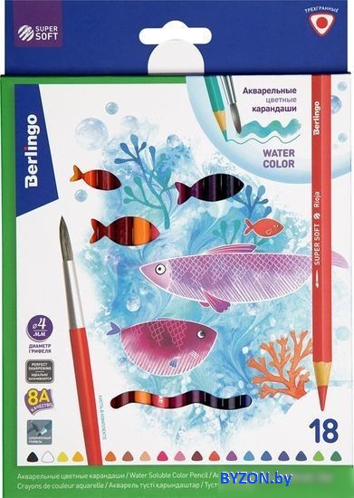 Набор акварельных карандашей Berlingo SuperSoft Рыбки SSA1718 (18цв) - купить в Минске