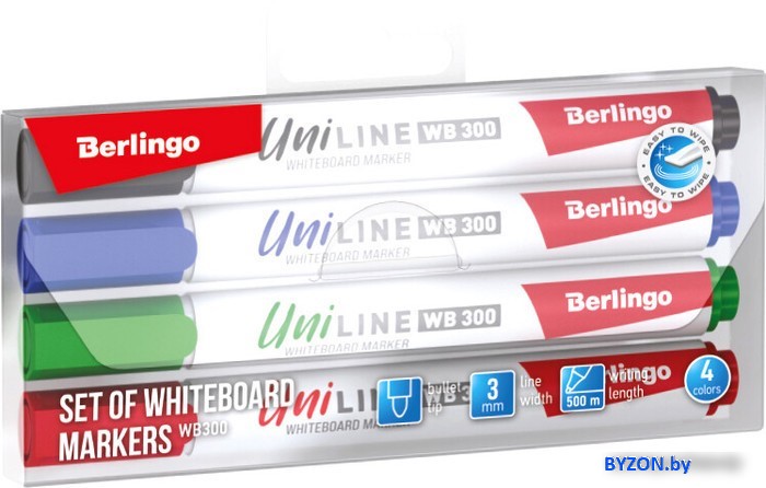 Набор маркеров Berlingo Uniline WB300 BMc_30509 (4 цв) - купить в Минске