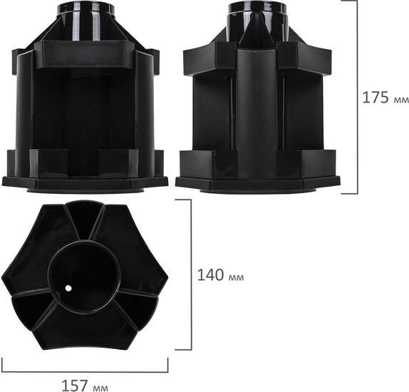 Информация | Практичная пластиковая подставка-органайзер предназначена для хранения различных канцелярских принадлежностей. Эргономичная пластиковая подставка-органайзер с 10 отделениями для пишущих принадлежностей и канцелярских мелочей. Легкое вращение на 360 градусов. Поставляется без канцелярского наполнения. |