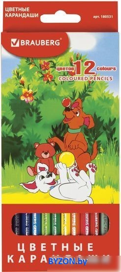 Набор цветных карандашей BRAUBERG My lovely dogs 180531 (12 шт.) - купить в Минске