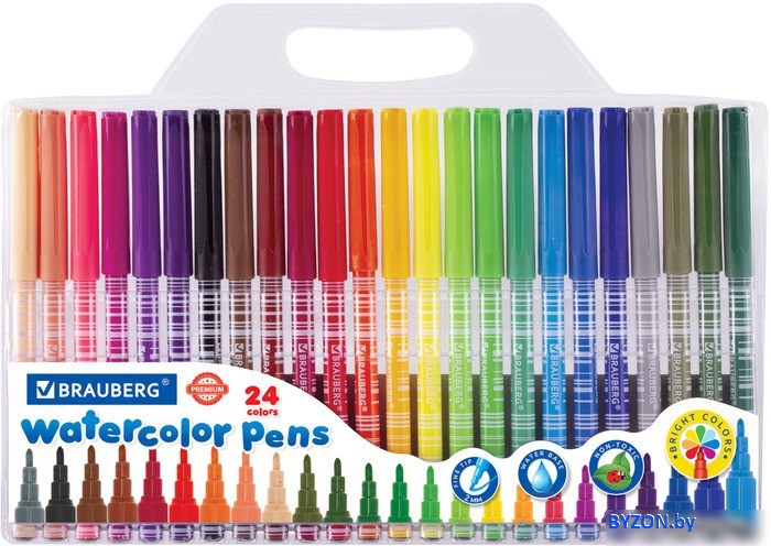 Фломастеры BRAUBERG Premium Корпус с печатью 151944 (24 шт) - купить в Минске