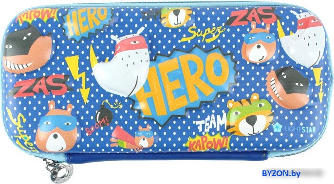Информация | Вместительный и яркий пенал на 1 отделение "HERO" из прочного материала станет незаменимым помощником для вашего ребенка. Предназначен для хранения письменных принадлежностей, канцелярских мелочей, принадлежностей для рисования. Оптимален в качестве подарка! Размер: 21,5*10*5см. Рисунок 3D. Цвет: синий, салатовый, голубой , бирюзовый. Два сетчатых кармана. Упаковка: п/э пакет с европодвесом 15*27*5см |