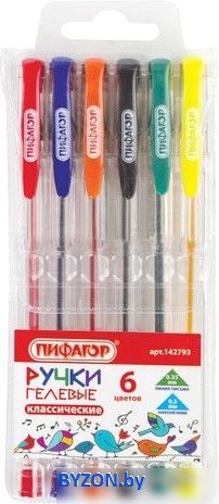 Набор гелевых ручек Пифагор 142793 (6 шт) - купить в Минске