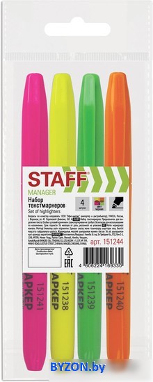 Набор текстовыделителей Staff Manager 151244 (4 шт) - купить в Минске