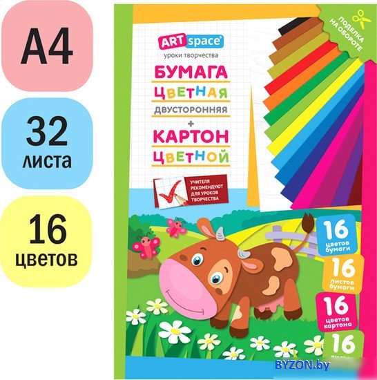 | Информация | Набор цветного немелованного картона ArtSpace станет незаменимым помощником в создании шедевров. Плотность бумаги: 45 г/м2. Плотоность картона: 190 г/м2. То, что нужно для детского творчества, развития мелкой моторики, зрительно-моторной координации, логического мышления и воображения!Формат: А4;Количество листов картона: 16;Количество листов бумаги: 16;Количество цветов: 26;Двусторонний: да. |